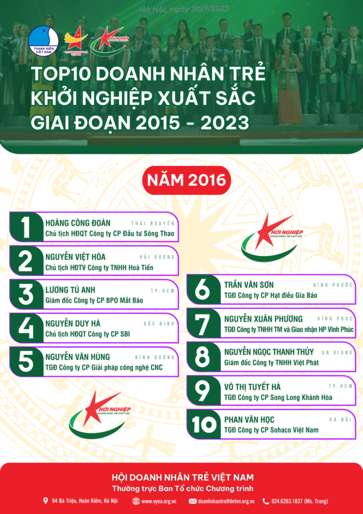 TOP10 Doanh nhân trẻ xuất sắc giai đoạn 2015 - 2023